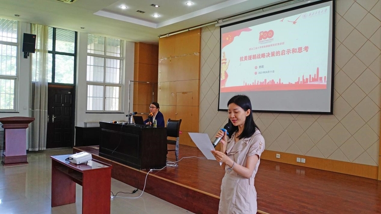 为深入贯彻落实习近平总书记关于党史、新中国史、改革开放史、社会主义发展史学习的重要讲话和指示精神,推进党史学习教育的深入开展,加深对党的历史的理解和把握,加深对党的理论的理解和认识,6月11日下午,公共政策与管理学院邀请中央电视台特约军事评论员、原国防大学教授、我校党史宣讲团成员李莉教授为学院党员师生讲授《抗美援朝战略决策的启示和思考》。本次党课在长安校区公共政策与管理学院207会议室举行,学院党委副书记谢丹主持。