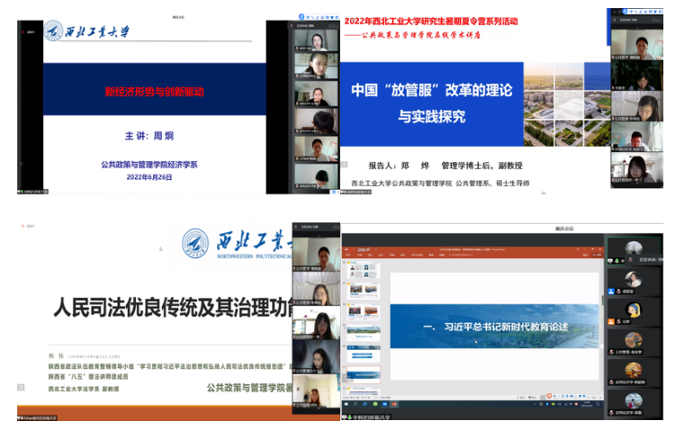 作为暑期夏令营的重点活动内容,学院组织了7场高水平学术讲座,分别由学院7位教师作了学术报告,内容涵盖公共管理、应用经济学、法学学科及教育的热点研究领域和经典问题。周炯老师发表了以“新经济形势与创新驱动”为主题的学术讲座,郑烨老师发表了以“中国‘放管服’ 改革的理论与实践探究”为主题的学术讲座,韩伟老师发表了以“人民司法优良传统及其治理功能”为主题的讲座,李辉老师发表了以“高等教育学与高校人才培养”为主题的讲座,刘锦林老师发表了以“卫生人力与人群健康”为主题的讲座,尚涛老师发表了以“双循环新发展格局下我国与‘一带一路’ 沿线区域OFDI与产业升级”为主题的学术讲座,王涛老师发表了以“中国构建CO2管道运输监管制度研究”为主题的讲座。精彩讲座引发了营员们的广泛共鸣。