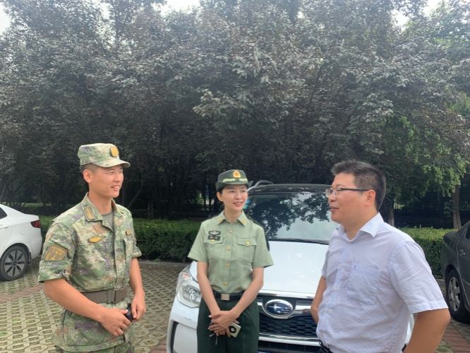 2023年9月1日,公共政策与管理学院党委书记张清江来到长安校区军训场,代表学院看望和慰问学院参加军训的学生、军训教官,学院军训带队老师谢丹副书记、褚向磊老师、张琳老师和办公室主任宋武伟陪同。