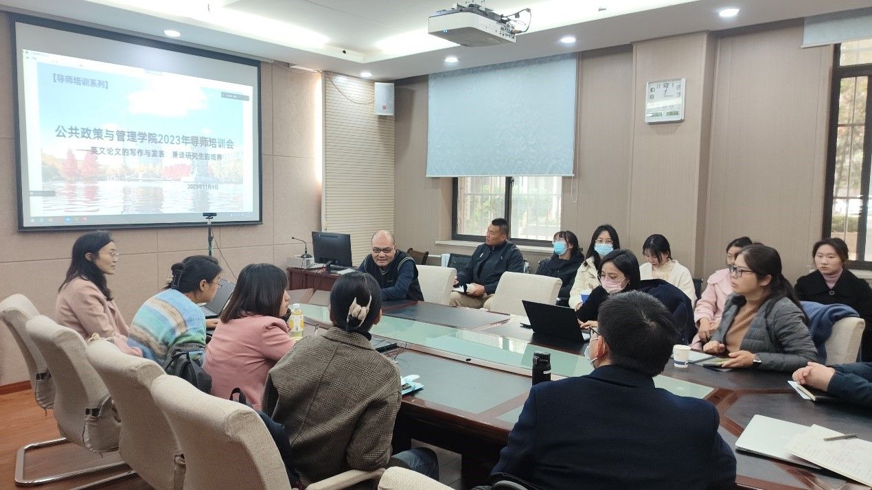 2023年11月9日,公共政策与管理学院在友谊校区MPA107会议室开展本年度研究生导师系列培训会,本次讲座题为“英文论文的写作与发表:兼谈研究生的培养”。此次会议特别邀请到了西安建筑科技大学公共管理学院程哲教授。会议由学院副院长原嫄教授主持,学院近三年新认定研究生导师和部分研究生现场参加讲座,同时学院在岗招生导师及在校研究生在线参加了培训会。