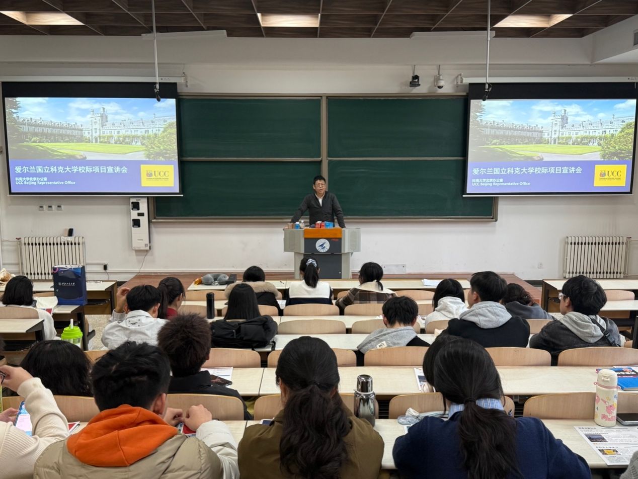 2025年11月3日,公共政策与管理学院邀请爱尔兰国立科克大学北京办事处副主任李鹏老师于长安校区教学东楼B1-204宣讲2026年爱尔兰国立科克大学寒假项目。宣讲会由学院院长助理席建成主持,学院50余名本科生参加会议。