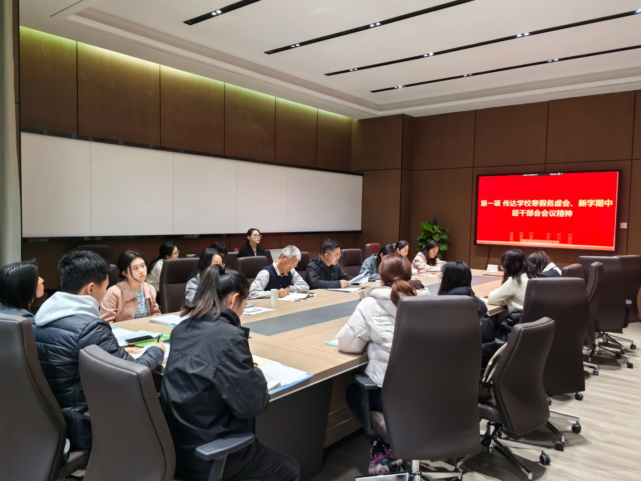 3月1日,公共政策与管理学院召开党委会,传达学习学校2026年寒假务虚会和新学期中层干部会等会议精神,围绕学院“十五五”发展目标及本学期重点工作开展专题研讨与全面部署。学院领导班子成员、党委委员及学院办公室工作人员参加会议,会议由学院党委书记管兴华主持。