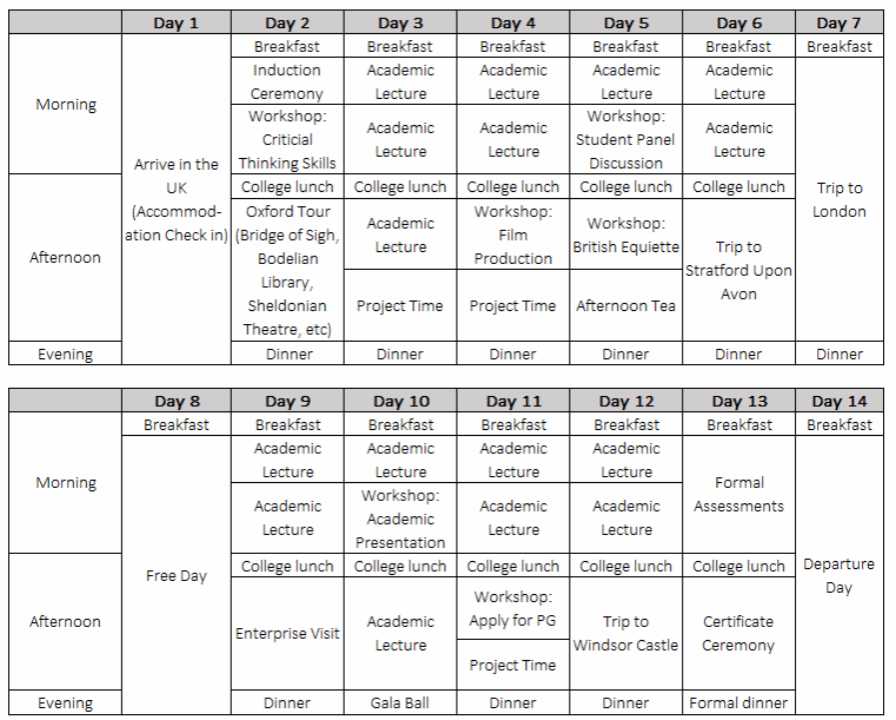 项目由跨学科学术课程、学术实践工作坊、行业特邀嘉宾讲座、英国企业参访、英伦文化体验和英式社交拓展六部分组成。项目亮点包含: