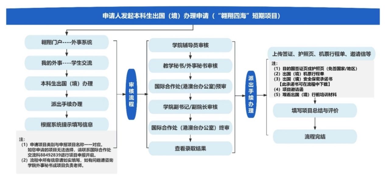 确认报名后,请参照下图登录西北工业大学翱翔门户-外事系统进行网上手续办理。