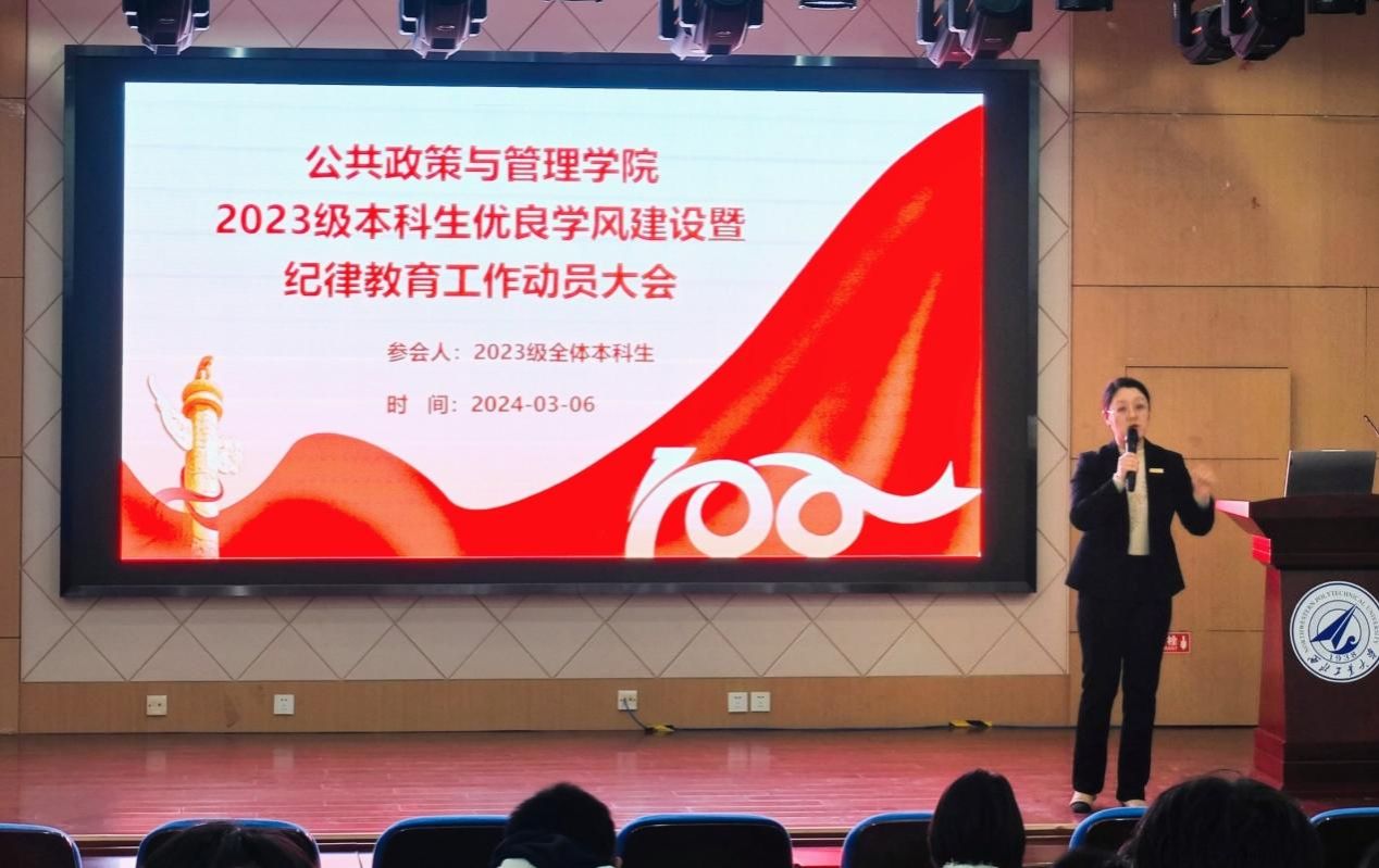 为营造良好的学习风气,贯彻落实学校“总师型”人才培养目标,提升学生纪律意识和良好行为规范的养成。3月6日晚,公共政策与管理学院在学院楼207报告厅举行了2023级本科生优良学风建设暨纪律教育工作动员大会。全体2023级本科生参加了此次会议,会议由辅导员田静婷主持。