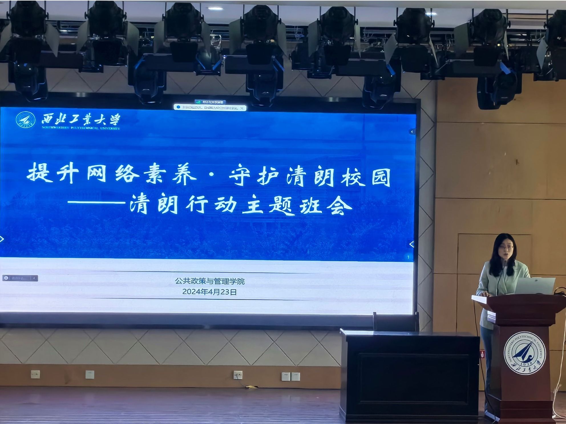 会上,黄清子宣传了清朗网络理念,强调了网络文明的重要性,号召同学们要自觉遵守网络行为规范,共同维护网络空间的清朗与和谐。同时,她还结合具体案例,引导学生树立正确的网络行为准则,形成积极、健康、向上的生活态度和价值追求,从思想上引领着大家将清朗行动融于学习与生活中,持续加强学生维护互联网的和谐生态意识。