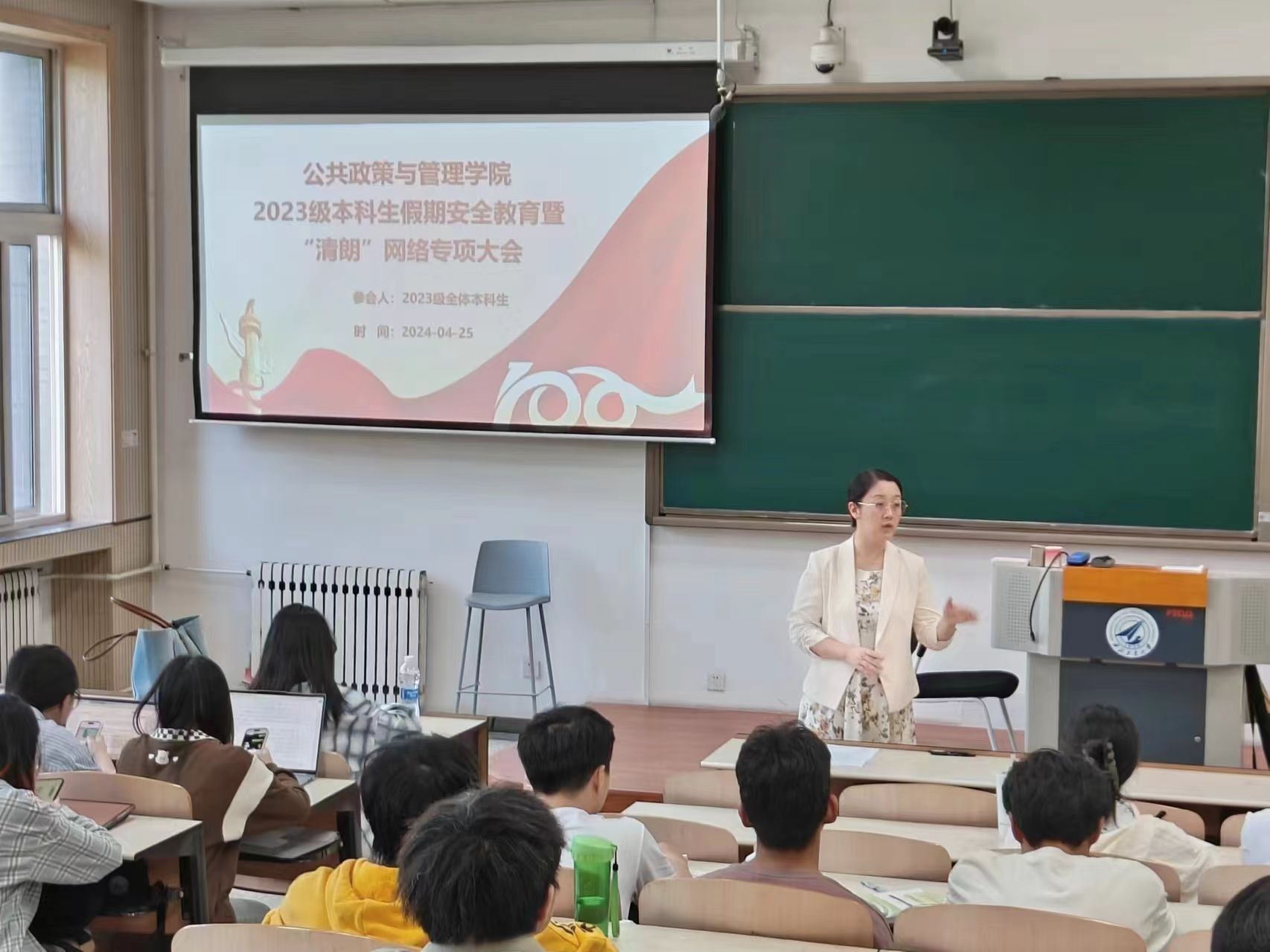 为教育引导广大公管学子厚植爱党、爱国、爱校的情感,提高学生网络文明素养,营造清朗健康校园氛围,近期公共政策与管理学院全院分别举行了清朗行动主题班会。各年级辅导员主持,全体在校生参与了班会。