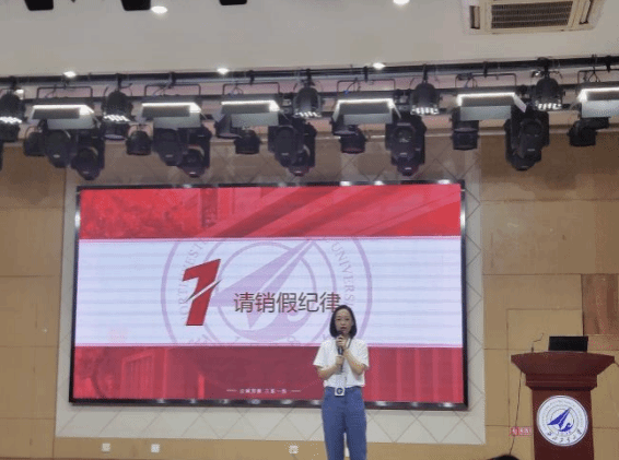 张悦从学生行为准则和学校管理办法谈起,解读学生手册的相关内容,敦促同学们认真履行有关制度,维护西工大的荣誉和形象,成为一名品德优良、行为规范的大学新生。她强调,规则的制定从来都不是为了束缚个体,而是为了维护群体的稳定和大多数人的利益,期待同学们在学校规章的规范下度过多姿多彩的大学生活。