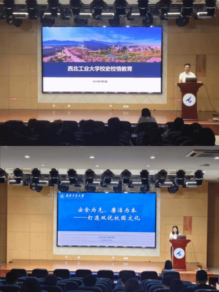 一是做好理想信念与校史校情、安全廉洁教育,引导学生树立正确价值观,增强学生认同感。为帮助学生感悟“公诚勇毅”的校训、“三实一新”的校风,9月5日上午,管兴华对新生进行校史校情教育,回顾学校建校以来的历史沿革与峥嵘岁月,鼓励学院学子“立大志向,上大舞台,入主战场,干大事业”。随后,学生参观校史馆,领略学校发展历程中的风采;9月5日下午,谢丹进行安全与廉洁教育,强调同学们应提高网络安全意识,拥有明确的是非观和价值标准,牢记西工大的校风校训,维护学校利益和国家利益。
