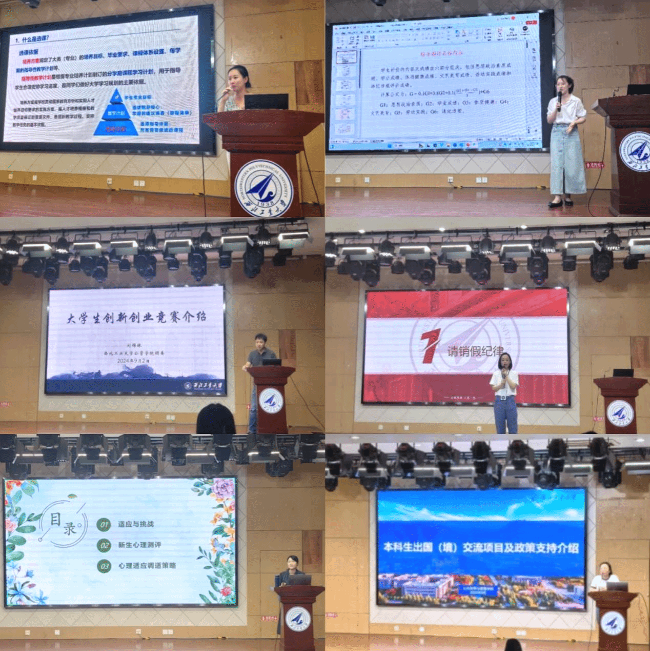 三是学院政策全方位解读与心理辅导,筑牢学生健康全面发展矩阵。8月31日下午,本科教学秘书靖文萍为新生做新生选课指导,详细介绍2024级大类培养方案与学院本科三大专业的培养目标、课程体系和学分要求;9月1日下午,2021级辅导员杨斯悦做本科生综合测评文件解读,提醒同学们稳扎稳打、综合提升个人素养;随后,新生辅导员张悦做适应性规则教育,解读学生手册的内容,敦促同学们认真履行有关制度;9月2日晚,院团委书记刘锦林做创新创业竞赛指导,强调我院哲学社科类学子应理解创新创业赛事核心要求,着眼群众需求解疑释惑,将论文写在祖国大地上,做出真正有深度、有思考的参赛作品;9月4日下午,学院携手学校学生心理健康教育中心举办新生心理适应讲座,心理中心倪文娟老师鼓励学生增强心理韧性、正视心理压力,并介绍我校多元化心理健康教育服务。此外,9月19日下午,学生做集中性心理测评,对自身心理状况有了进一步了解;9月5日下午,外事秘书魏昱芸做国际化交流指导,从国家层面和学校层面分别介绍国际化交流项目,并着重提醒学生们争取交流机会,拓宽自身视野。