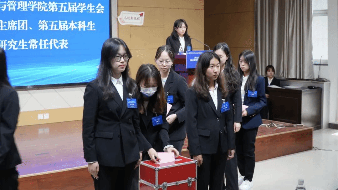 大会圆满结束各项议程与任务,并选举产生了由王啸天等3人组成的公共政策与管理学院第五届学生会主席团;由陈巧巧等3人组成的公共政策与管理学院第五届研究生会主席团;由闫正楠等4人组成的公共政策与管理学院第五届本科生常任代表以及由刘伊莎等2人组成的公共政策与管理学院第五届研究生常任代表。
