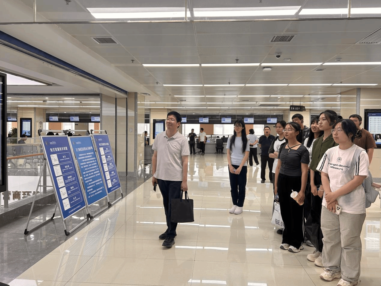 在莲湖区市民中心,师生首站参观了“人力资源服务综合窗口”。通过“微政务”智慧平台升级版,个人和企业可“看图办事、一点即达”。工作人员重点介绍了“智慧踏勘服务中心”——依托无人机全景拍摄与远程专家会诊平台,破解审批细节把控难题,审批效率提升30%以上。同时,莲湖区聚焦规上企业全生命周期代办服务,坚持系统集成、协同高效,线下围绕服务阵地、代办队伍、服务举措等方面提供闭环服务,线上依托“西安助企”等多元、智慧信息化平台拓宽服务渠道,创新打造“三全三新”服务体系。学生体悟到“从‘最后一公里’到‘零距离上门’,智慧政务真正让服务有了温度。”
