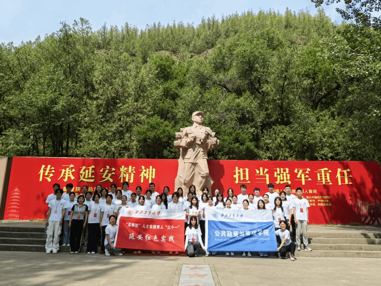 为进一步落实学校关于“总师型”人才实践育人“三个一”总体工作部署,深化红色育人成效,6月21日至6月22日,公共政策与管理学院组织50名本科生赴延安开展红色研学。学院党委书记管兴华参加,党委副书记谢丹、学工主管张国丽带队。大家先后走进延安革命纪念馆、杨家岭革命旧址、延安枣园旧址、陕甘宁边区高等法院旧址等地,通过阅览图文、观摩实物、实地党课学习、集体诵读等形式,汲取革命智慧,领悟延安精神、厚植家国情怀。