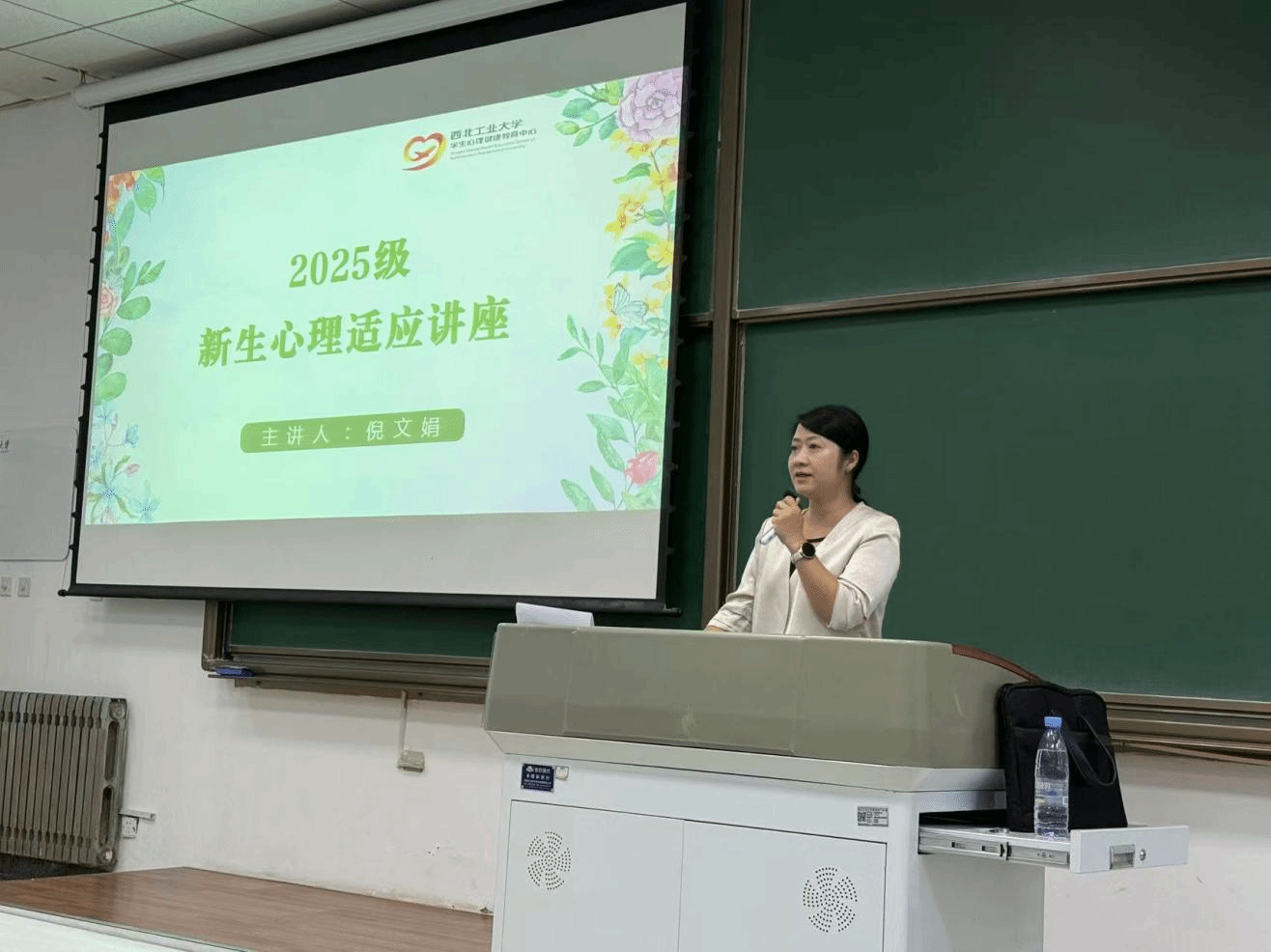 倪文娟老师首先围绕“新生心理适应与挑战”展开讲解。她指出,大学新生需实现“学生思维”到“成人思维”的关键转变,并重点强调了在独立生活能力、人际交往、职业规划以及时间管理四个维度加强适应能力的重要性。讲座还公布了新生心理健康测评的具体安排,并对心理咨询资源的预约与使用途径作了详细说明,为新生的心理健康保障提供系统支持。
