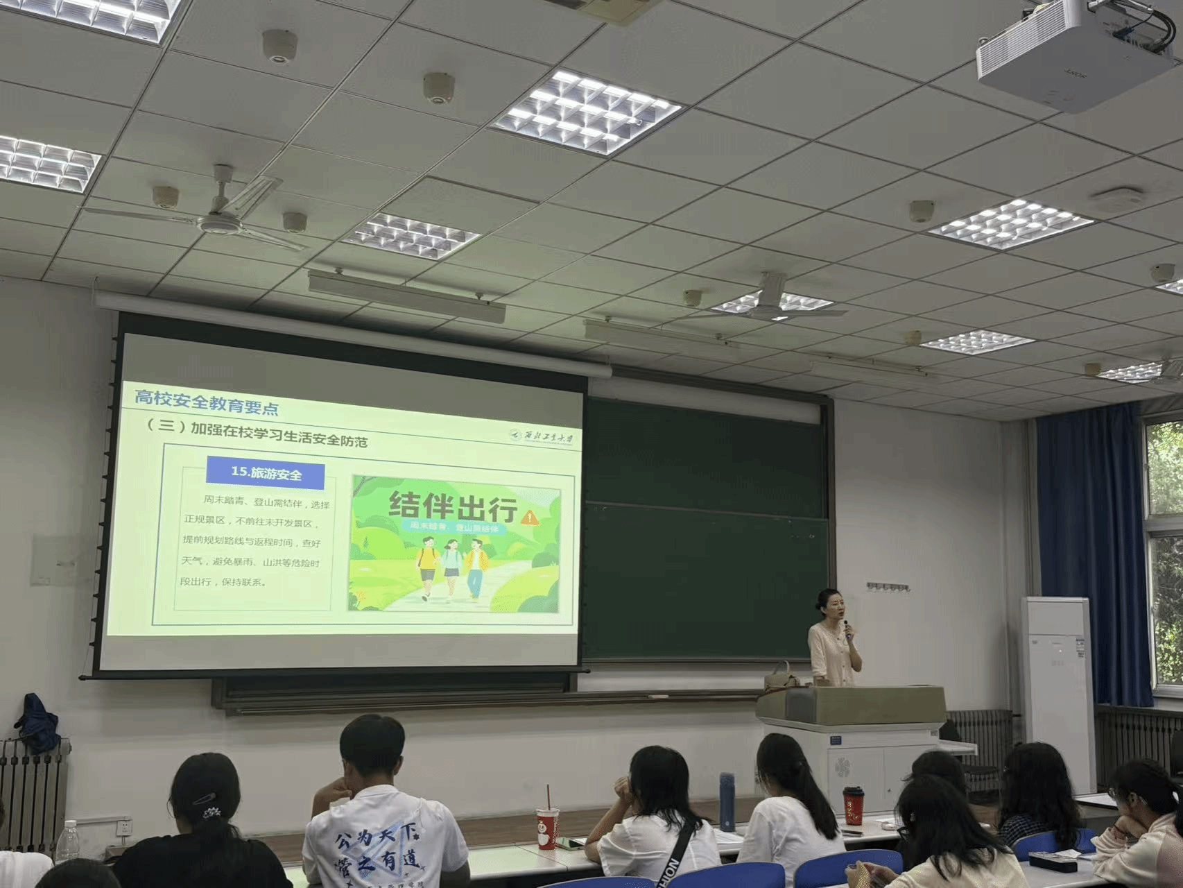 为增强2025级本科新生安全意识,筑牢校园安全根基,保障学生平安开启美好大学生活,9月11日,公共政策与管理学院组织召开“安全教育第一课”。会议邀请学院党委副书记谢丹担任主讲人,辅导员薛智华主持,2025级全体公管本科生参加。