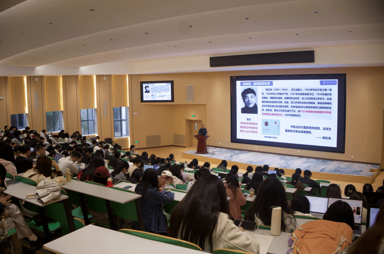 陈建有以我校在国防领域取得的辉煌成就,阐释了“为国西迁、为国育才、为国铸剑”的内涵与深刻意义,以我校十大“高光时刻”,带领同学们回溯西迁岁月中师生们扎根西北的艰辛坚守,梳理学校在服务国家发展战略中的使命传承,聚焦“为国铸剑”的核心篇章,介绍西工大在人才培养中“愿意去、留得住、干得好”的现象,解读学校“天下工大,世界三航”的远景目标,生动再现了西工大人始终与国家战略同频共振、用专业力量守护家国安宁的奋斗历程,引导学生从先辈事迹中汲取力量,树立“强国有我”的理想信念。