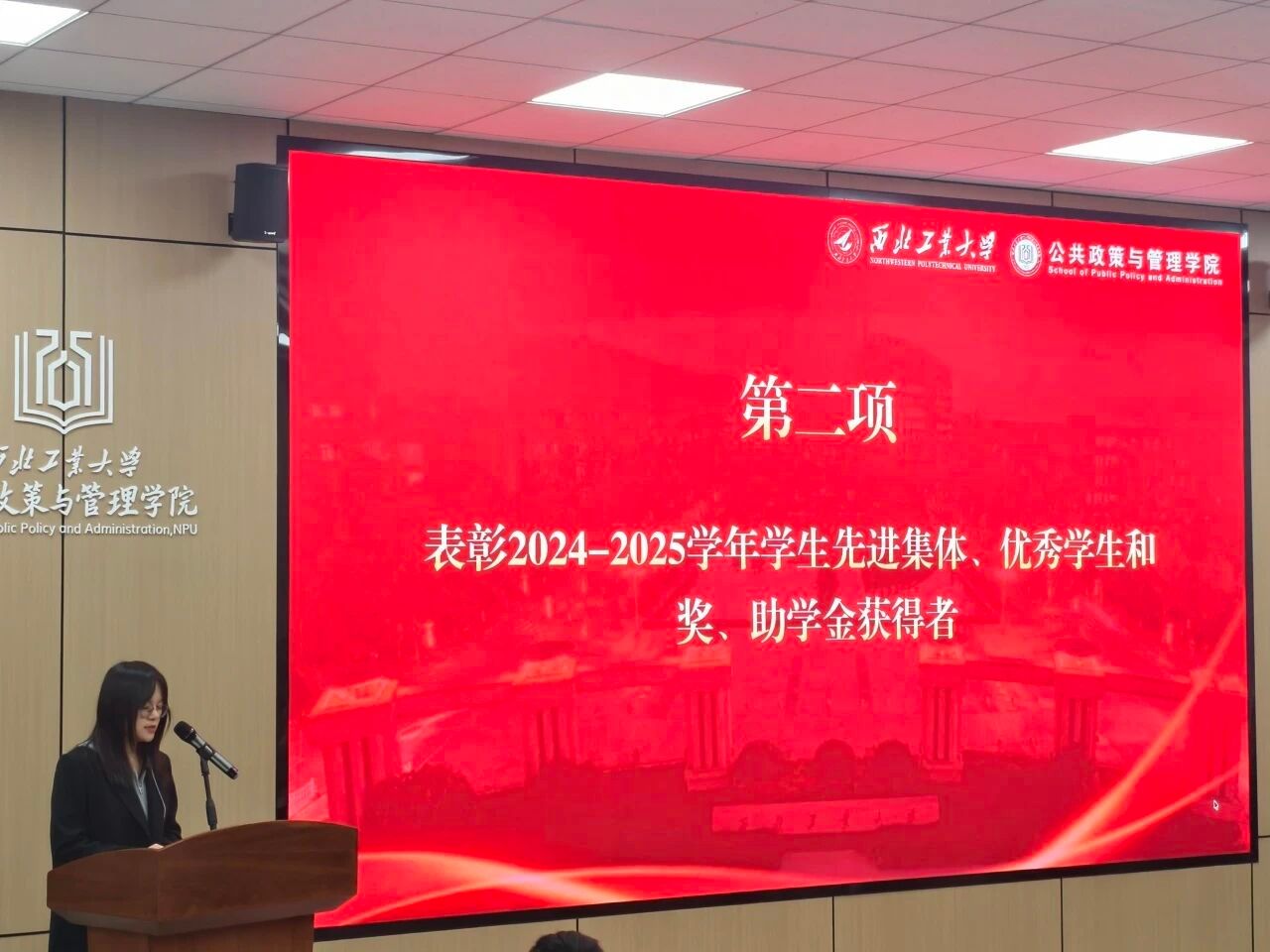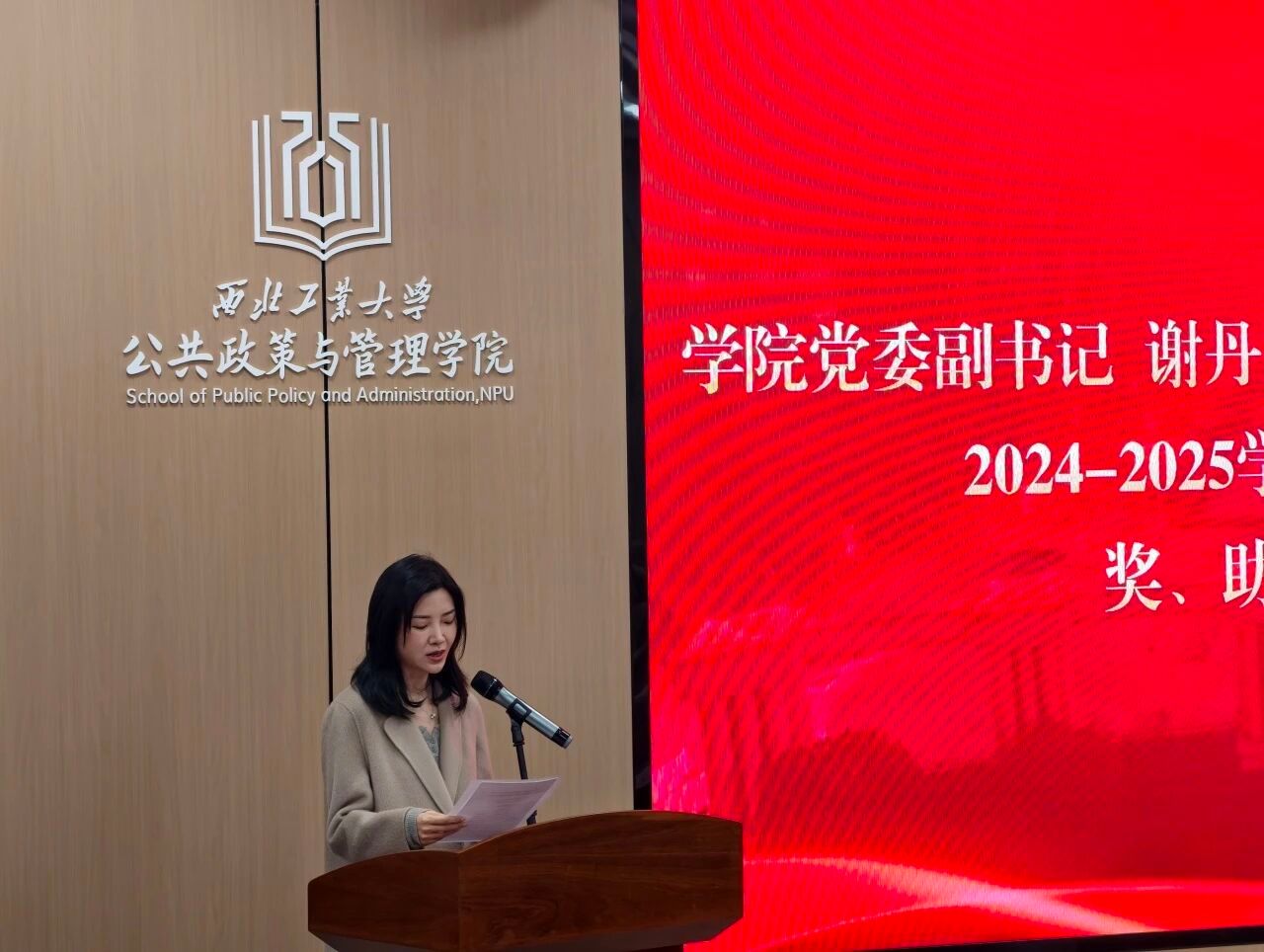 大会伊始,学院党委副书记谢丹宣读《关于表彰公共政策与管理学院2024-2025学年先进集体、优秀学生和奖、助学金获得者的决定》。