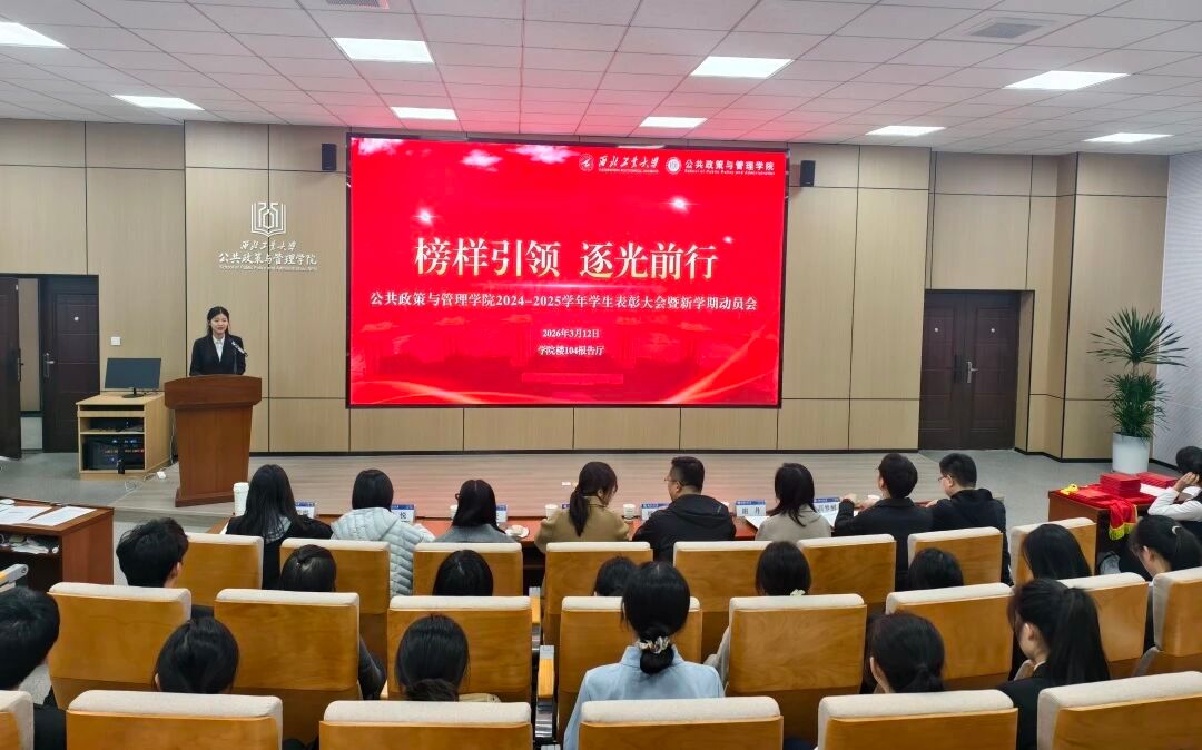 3月12日下午,公共政策与管理学院2024-2025学年学生表彰大会暨新学期动员会在学院104报告厅举行。学院党委书记管兴华出席表彰大会并讲话。副院长原嫄、党委副书记谢丹,学工组全体老师,先进集体、优秀学生和奖、助学金获得者代表、各年级学生代表参加大会。大会由2022级本科生林琬钧主持。