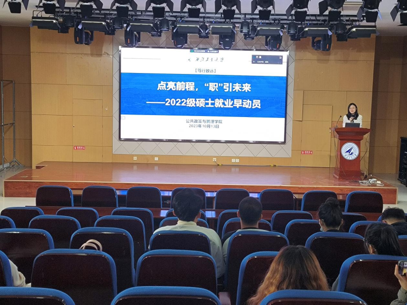 10月13日上午,公共政策与管理学院“点亮前程,‘职’引未来”2022级硕士就业早动员会在马克思主义学院207报告厅成功召开。学院党委副书记谢丹、研究生辅导员黄清子与2022级全体研究生参与了此次活动。