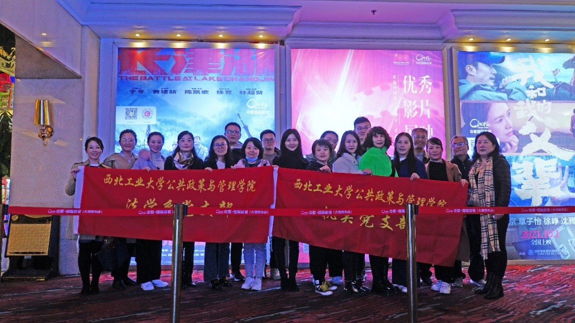 为认真学习贯彻习近平总书记“七一”重要讲话精神,深入推进党史学习教育走深走实,学好《中华人民共和国简史》,大力弘扬爱国精神,传承红色基因,引导广大党员不忘初心、牢记使命, 10月20日,公共政策与管理学院机关党支部与法学党支部在中影国际影城大唐西市店共同举行了“观看电影《长津湖》”联合主题党日活动。