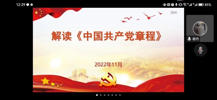 随后,谢丹以多个关键词为切入点解析了二十大党章修改的具体内容,梳理出了“两个结合”、“时代精华”等三十个关键词,结合二十大报告,充分挖掘关键词背后的深刻含义,解读其中蕴含的党的治国理政新理念新思想新战略,系统讲解了二十大报告中习近平总书记的重要论述。通过大家积极互动的形式,使与会党员同志对《中国共产党章程》有了更深层次的理解,对党的二十大精神有了更加深刻的认知和感悟。