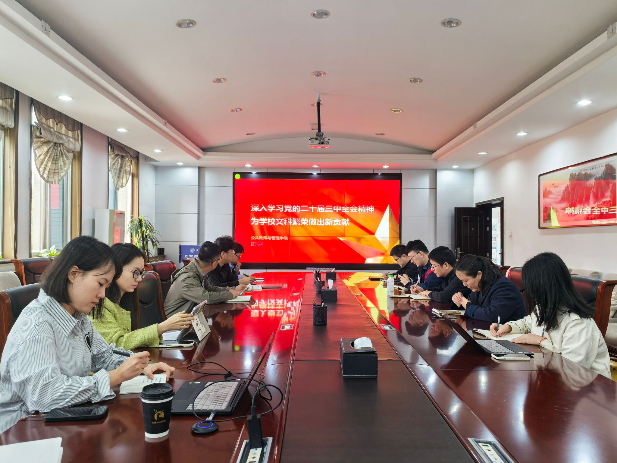 与会人员结合自身教学、科研与工作,围绕党的二十届三中全会及学校第十四次党代会精神进行了深入学习和研讨。大家纷纷表示,学校实施文科繁荣文科计划为公共管理学科及各位教师的发展提供了机遇与挑战,大家要积极投身学校的建设征程,为实现文科繁荣不懈奋斗!未来,公共管理系党支部也将以高质量党建为抓手,始终着眼党建业务相结合,以党建工作促业务发展,以业务发展促党建能力提升,为学科、学院和学校的发展贡献力量!