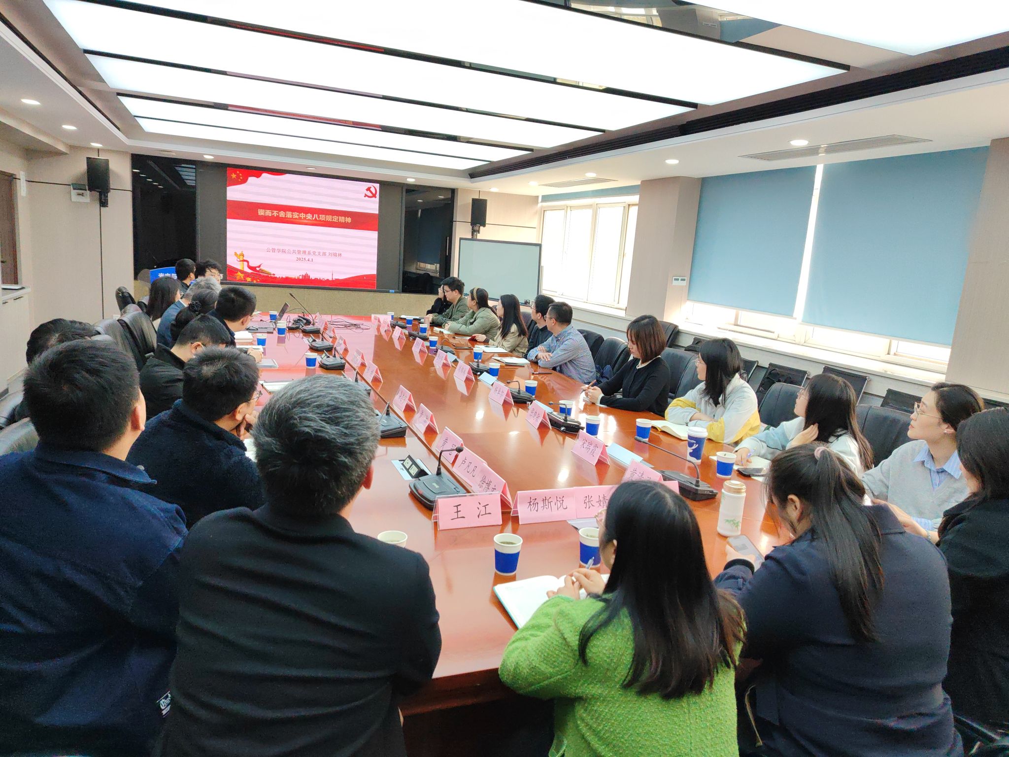 会议首先开展深入贯彻中央八项规定精神学习教育。刘康领学了中共中央办公厅印发《关于在全党开展深入贯彻中央八项规定精神学习教育的通知》,带领大家学习回顾了中央八项规定的具体内容。公共管理系党支部书记刘锦林领学了中央八项规定精神,以案例形式呈现了违反中央八项规定精神的具体问题。