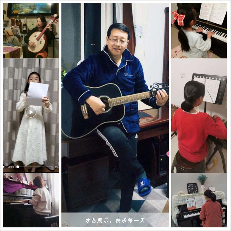 通过微信群观摩厨艺,全院教职工热情高涨,餐后开始展示才艺表演。有的拨弦弹奏,有的挥笔作画,还有的发布摄影作品。作为家属的小朋友们也按耐不住,踊跃展示才艺:弹钢琴、弹古筝、弹吉他、尤克里里,画画、唱歌、跳舞、朗诵、下棋、玩拼图,连刚刚半岁的小家属也迫不及待展示“新技能”。微信群里打卡忙,展示出一派温馨甜蜜、其乐融融的生活图景。