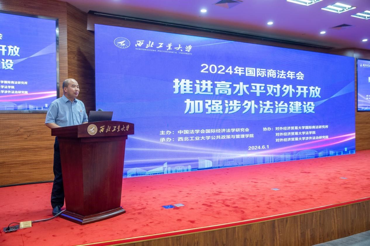 2024年6月1日,由中国法学会国际经济法学研究会主办,西北工业大学公共政策与管理学院承办,对外经济贸易大学国际商法研究所、对外经济贸易大学法学院、对外经济贸易大学涉外法治研究院协办,以“推进高水平对外开放,加强涉外法治建设”为主题的2024年国际商法年会在西北工业大学顺利召开。