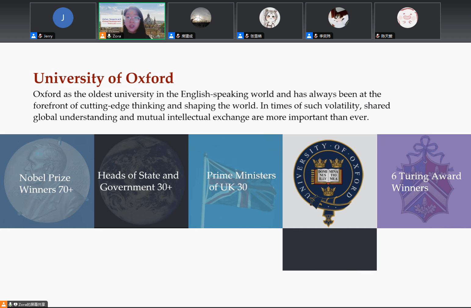 2024年3月22日晚,公共政策与管理学院邀请牛津大学全球发展与展望研究院Zora Zhou老师线上宣讲暑期访学项目。本次宣讲会由学院院长助理席建成主持,学院30余名本科生和研究生参加。