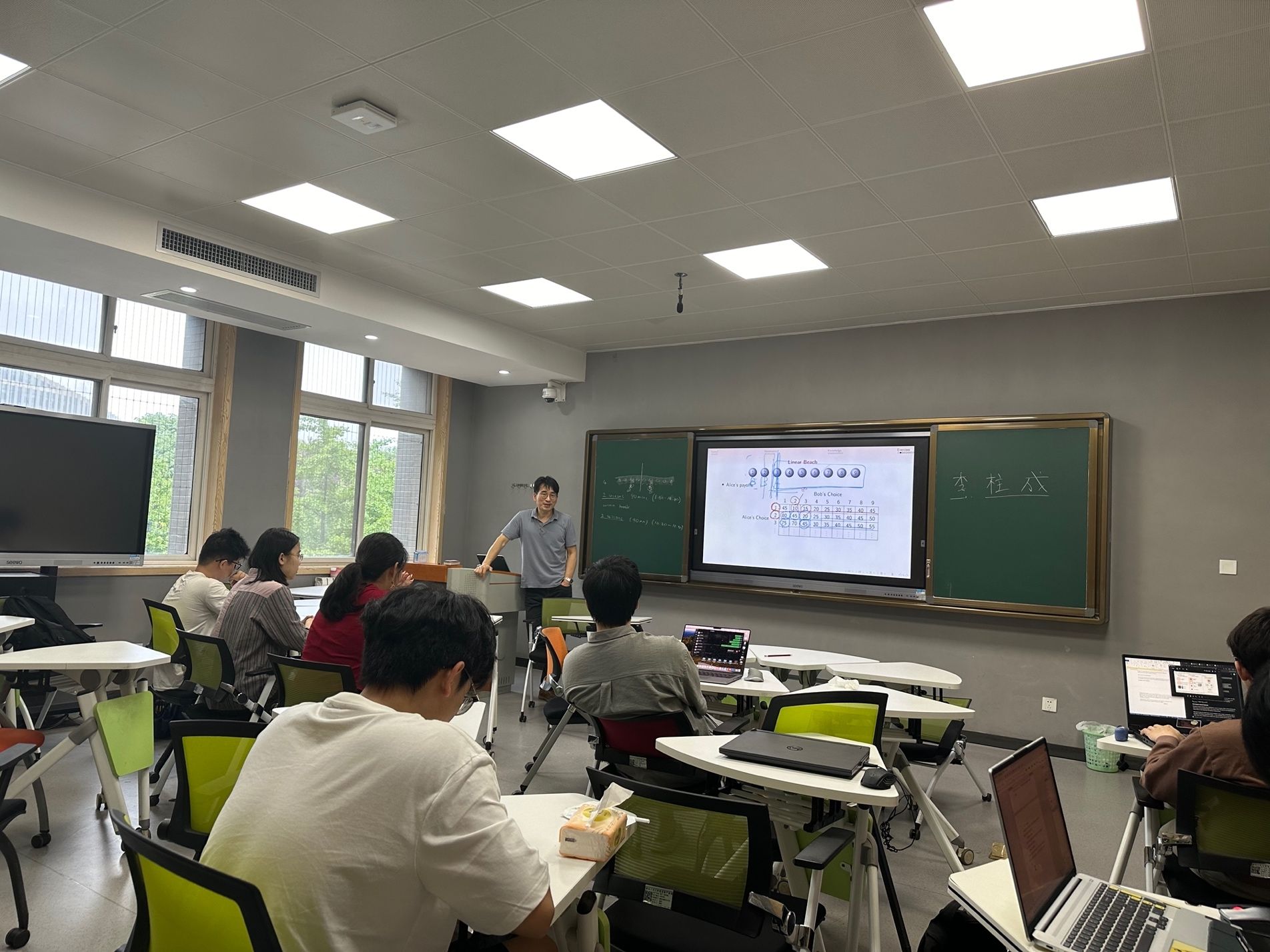 公共政策与管理学院梁硕助理教授邀请韩国成均馆大学副教授Joosung Lee讲授《博弈论:战略和集体决策/ Game Theory: Strategic and Collective Decision Making》和《博弈论基础:市场设计的理论与应用/Market Design: Theory and Applications》两门课程。课程旨在介绍博弈论基础理论,使学生掌握经济学经典的分析与决策的工具,培养经济学思维。授课过程中,Joosung Lee能够根据学生的基础和学习背景及时调整教学内容,激发了学生的学习兴趣和课堂参与度,教学质量受到了学生的积极认可。