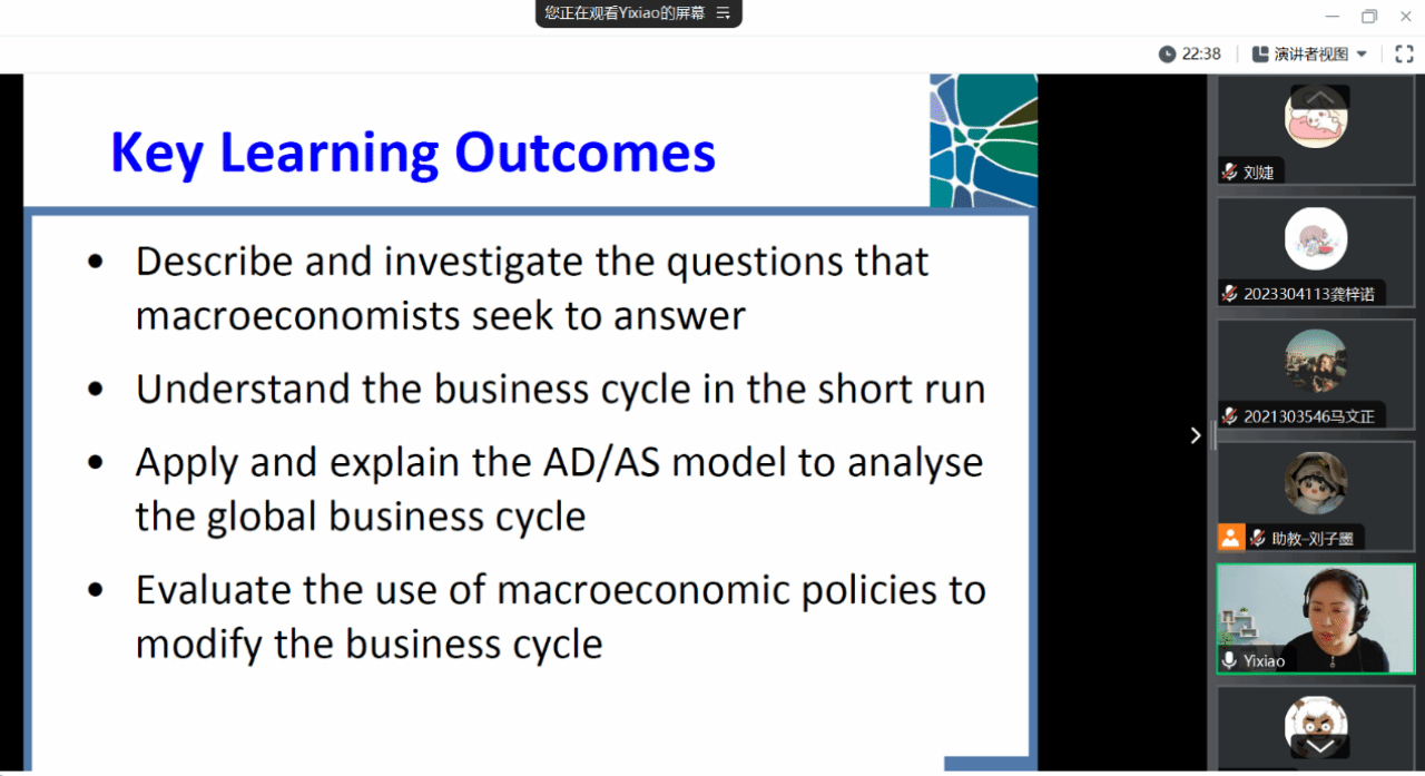 公共政策与管理学院刘婕副教授邀请澳大利亚国立大学副教授Yixiao Zhou讲授《宏观经济学原理:政策和实践/Macroeconomic Principles: Policy and Practice》课程。课程内容围绕宏观经济的理论和政策实践,具体包括宏观经济学要解决的现实问题、如何构建理论模型解释经济周期、宏观经济中的重要变量以及评估宏观经济政策对经济周期的影响。最后在实践环节,Yixiao Zhou通过翻转课堂,提高学生运用理论分析前沿经济学问题的能力。