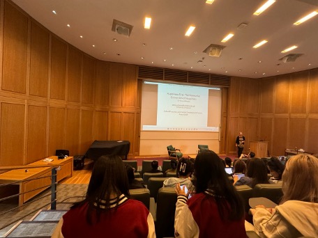 两个项目小组的同学分别聚焦“人工智能与隐私权保护”和“动物福利”两大主题进行了精彩的汇报。他们凭借详实的数据支撑、引人入胜的案例讲述、高频率的观众互动环节以及富有洞察力的个人见解,全方位展现了工大学子的专业素养与精神风采,赢得了教授们的高度赞誉。在汇报结束后,教授们不仅就问题的逻辑思考起点、分析方法及主题探讨给出了深层次的反馈和指引,还对小组成员的演讲风格、语速控制等演讲技巧方面提出了中肯的建议,这些宝贵意见对同学们今后在学术交流和公共表达方面的提升具有积极的指导意义。