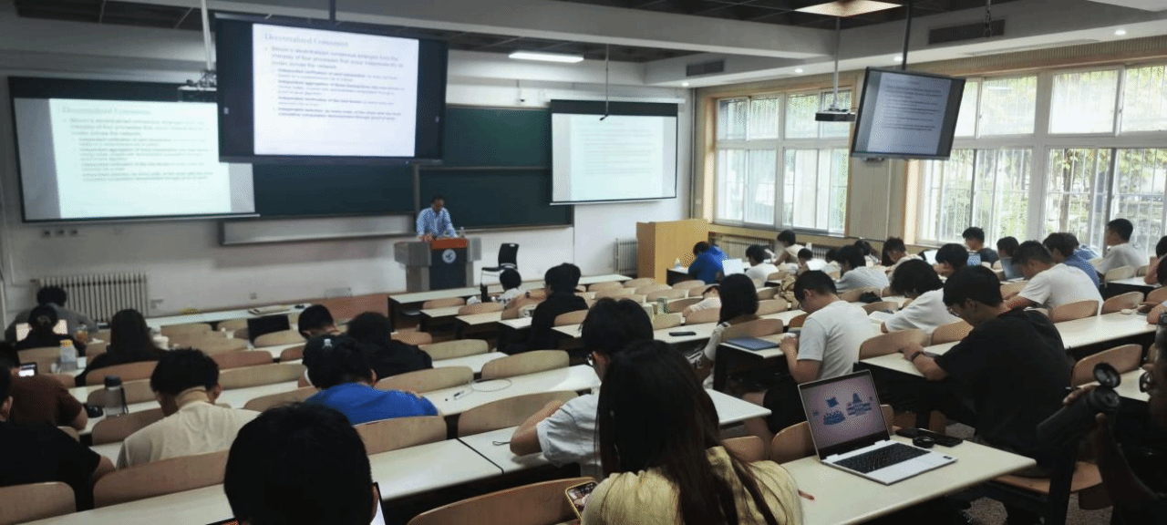 周炯教授邀请美国克利夫兰州立大学教授Wenbing Zhao讲授《区块链原理与应用/Blockchains: Principles and Applications》课程。课程内容聚焦区块链技术的核心领域,涵盖其产生背景、基本原理、维护机制及多场景应用。课程以比特币为典型案例,深入浅出解析区块链的发展历程、技术突破与应用创新,重点引导学生掌握密码技术、共识机制等底层逻辑,理解区块链从起源到实践的完整脉络。通过专题学习,学生不仅能明晰技术运行的底层规律,更能学会运用“区块链思维”分析各行业场景,设计贴合实际需求的应用程序。