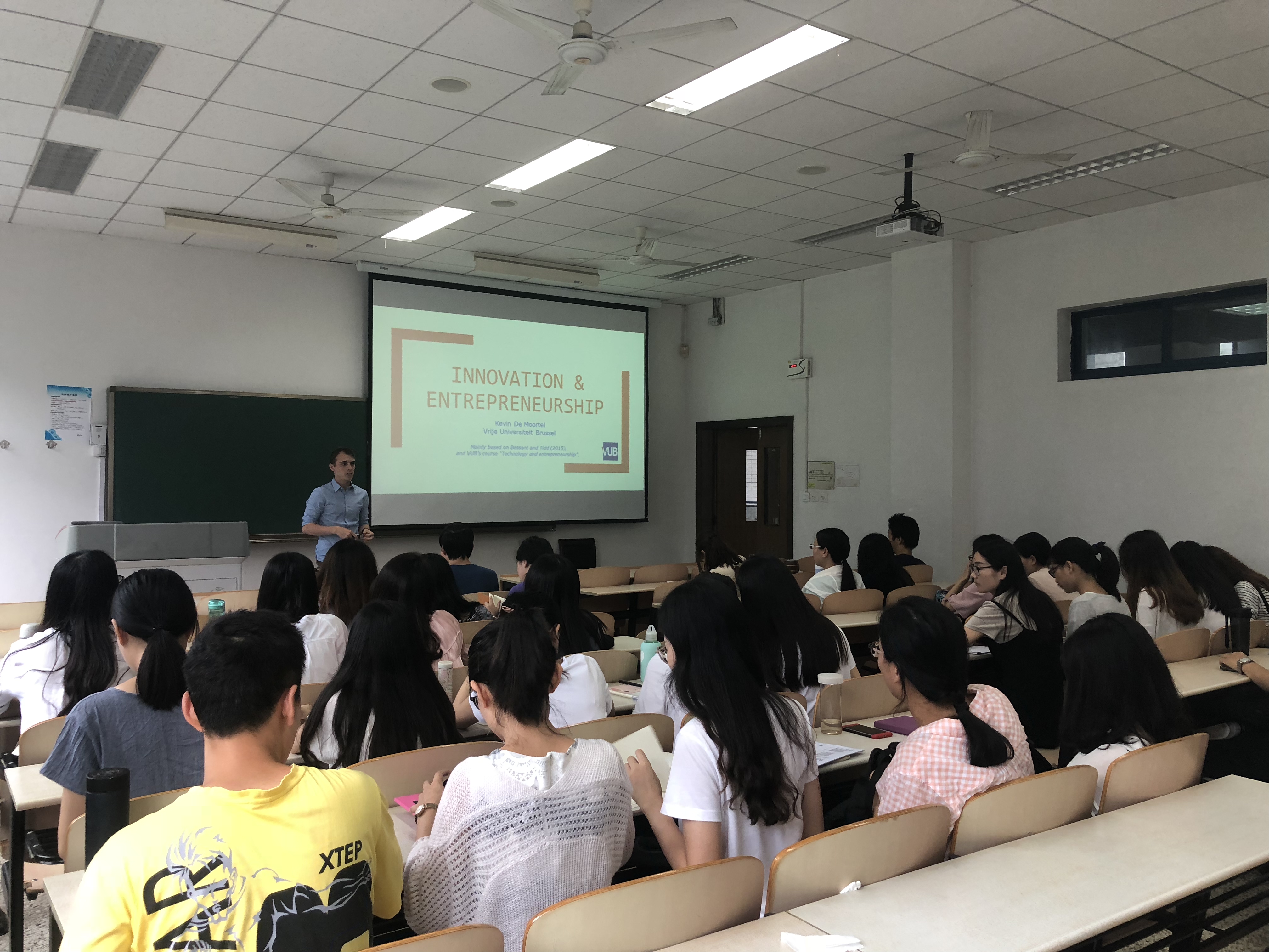 为拓展学生国际视野,增强学生创新意识与创新能力,加快学生教育国际化进程,由教务处、研究生院和国际合作处联合发起的暑期国际学堂于7月8日在国际会议中心第二会议室举行开幕式。此次我院特聘请比利时布鲁塞尔自由大学助理教授Kevin De Moortel于2018年7月9日至7月20日讲授“创新与创业”全英文专业课程,为学院本硕学生提高研究水平和创新能力搭建国际交流平台。