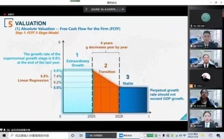 经公共政策与管理学院新文科创新基地选拔,组成了由周炯老师任带队指导、学院研究生刘依宁、张兆兴和本科生杨弋锌、苏子淇四位同学组成的团队,于2022年7月7日参加了赛事开赛仪式。7-10月,团队成员利用暑期和课余时间进行全英文研究报告的准备与撰写,通过大量收集资料并研读分析、调研研究对象,开展行业研究、ESG研究、财务分析、建模估值等,成功完成参赛作品。10月25日,团队向CFA协会提交了参赛研究报告和演讲视频,经评审后,以小组第一名的成绩晋级决赛。
