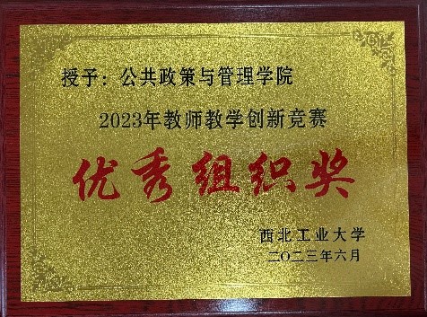 近日,经过院级初赛、校级复赛、校级决赛等环节,公共政策与管理学院青年教师张澄在2023年西北工业大学教师教学创新竞赛中荣获特等奖,学院获优秀组织奖。