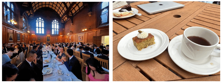 学校安排了两次Formal Hall和英伦下午茶体验,所有学生身着正式礼服参加学院的高桌晚宴,享用最正宗的英国传统美食,并聆听天籁般的拉丁文祷告。这一具有英伦贵族古典韵味的剑桥传统已经延续了800多年。在下午茶体验中,同学们品尝到了蛋糕和锡兰红茶等英式茶点,体验了独具特色的英伦文化。
