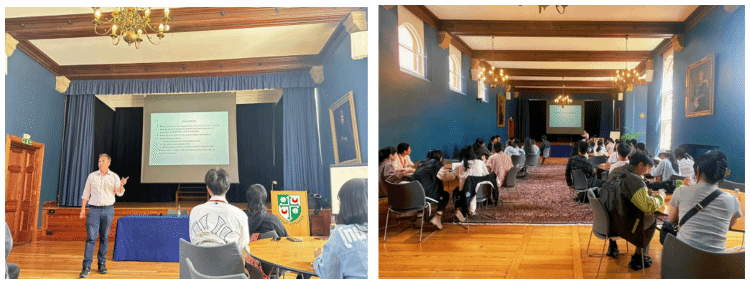 此外,同学们还听了两次分享讲座,第一次讲座是由剑桥大学校友带来的经验分享会,同学们收获了国际友谊并且增加了未来海外留学的申请经验,第二次讲座是由剑桥大学的Eoin Devlin历史学研究员带来的剑桥大学及各学院历史发展渊源介绍。