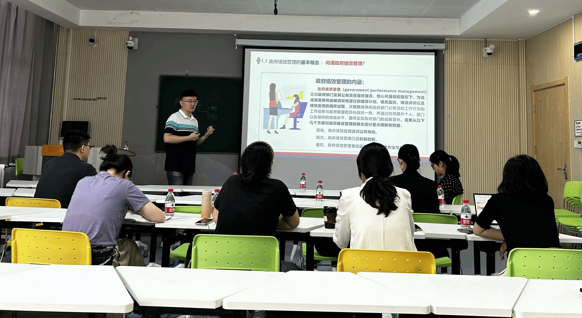 接着,郑烨讲授行政管理专业核心课程《政府绩效管理》第一章内容:政府绩效管理概述。郑老师从基本概念入手进而展开有关政府绩效管理历程、价值取向以及系统模型的讲述,仪表端庄,教案完备,语言规范,逻辑鲜明,条理清晰。