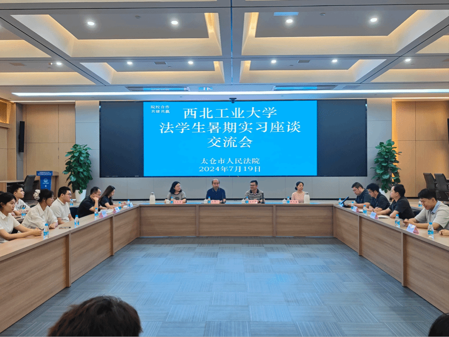 2024年7月19日下午,西北工业大学公共政策与管理学院院长刘晨光、党委书记管兴华一行到访太仓市人民法院,参加学院法学专业暑期实习座谈交流会。此次会议旨在巩固并深化双方在法学教育与实习实践方面的合作,促进学院法学理论教育与实践教育的紧密结合,为法学学科建设注入更多实践教育活力,为未来法律人才培养搭建更坚实的桥梁。参加会议的还有太仓市人民法院的领导和资深法官以及学院的实习带队老师刘咏芳、韩文蕾。