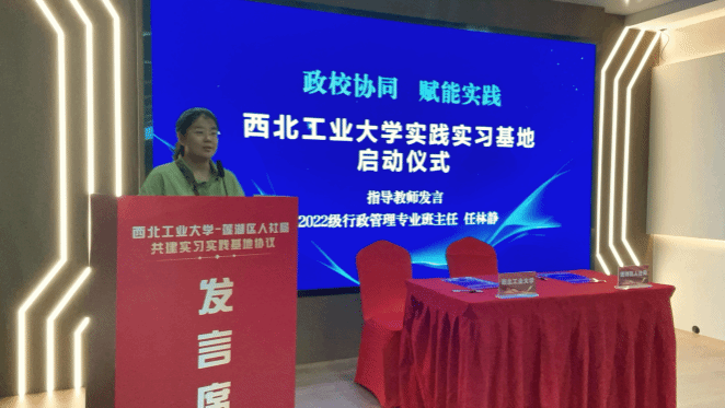 原嫄副院长在致辞中回顾了前期"政校联动探治理"等实践活动的成效,强调此次合作是学院深化教育教学改革的关键举措,对于培养学生的专业实践能力、创新能力和社会责任感具有重要意义。她希望同学们秉承西工大“公诚勇毅”的校训,从“课堂知”走向“实践行”,以饱满的热情和严谨的态度投入到实习工作中,深刻感悟民生服务的厚度与基层治理的温度,致力于成为兼具家国情怀与实践能力的公共管理人才。