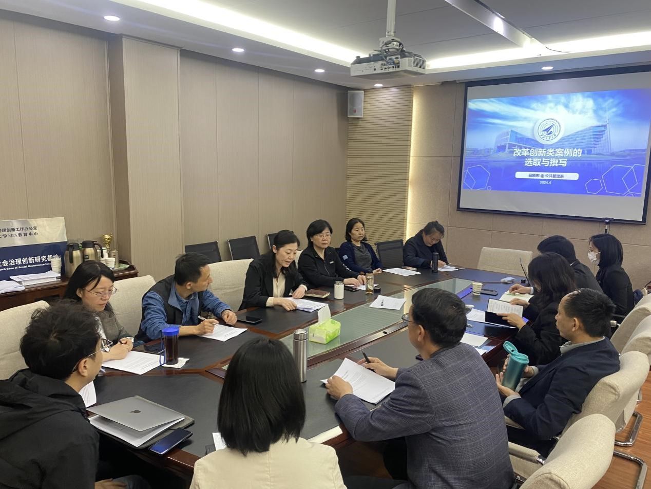 MPA中心副主任张婷主持案例建设研讨环节。公共管理系主任寇晓东老师结合已入库案例完成情况,分享了如何在社会治理领域进行案例选题与撰写的经验和体会。最后,与会老师们结合各自的课程教学情况,就如何开展案例研究进行了热烈的讨论。
