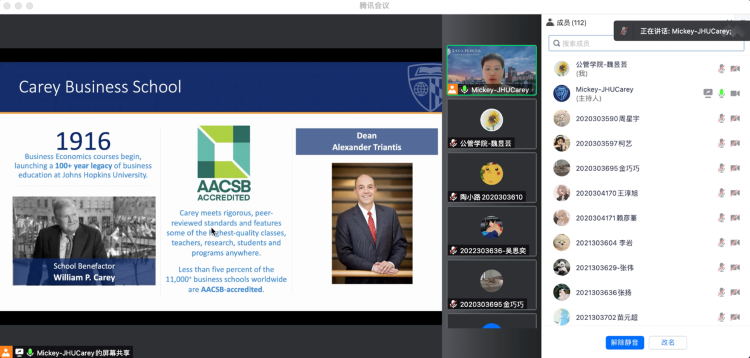 学院举办美国约翰霍普金斯大学凯瑞商学院学位项目线上宣讲会