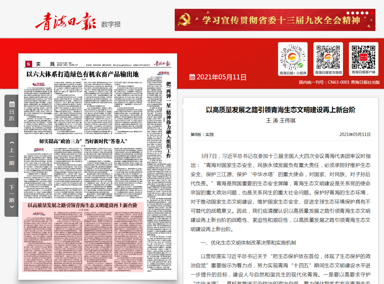 公共政策与管理学院王涛助理教授在《青海日报》发表理论文章
