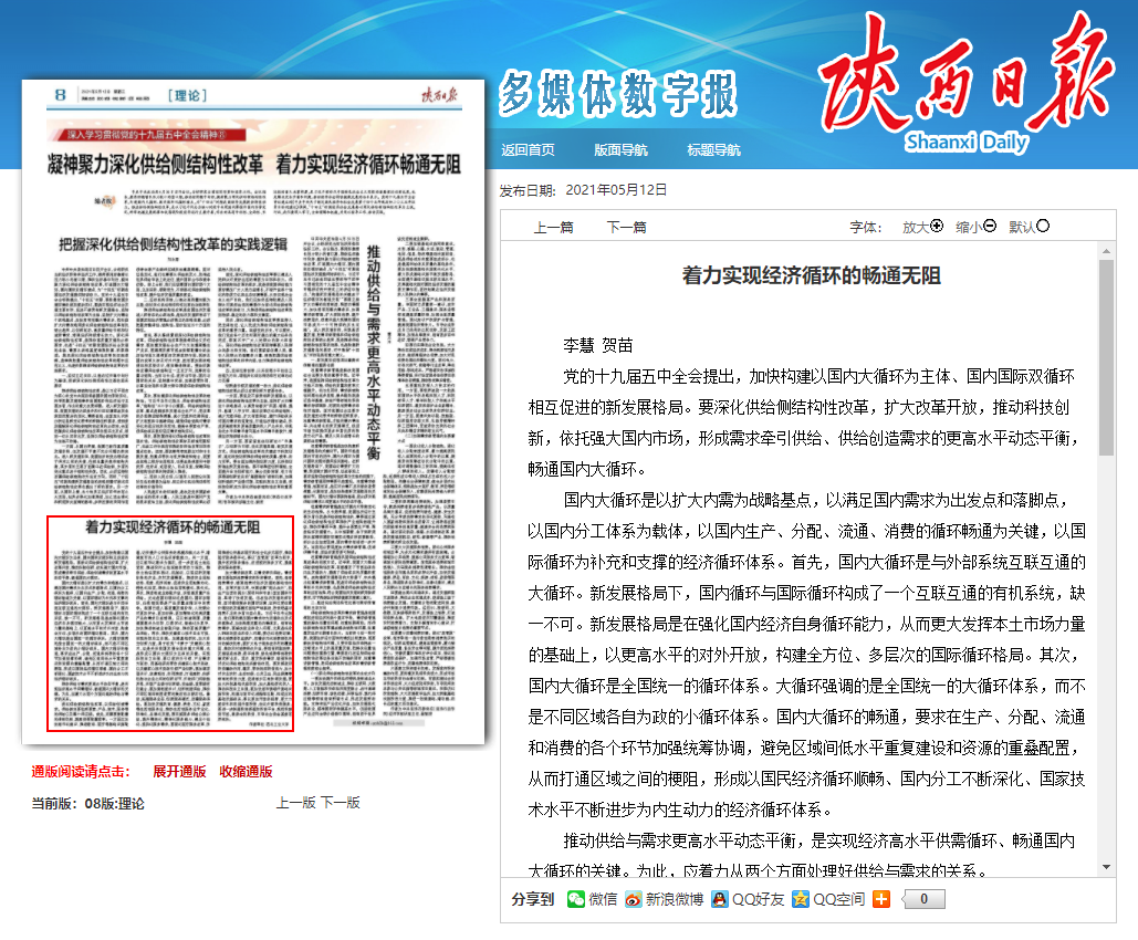 公共政策与管理学院李慧副教授在《陕西日报》发表理论文章